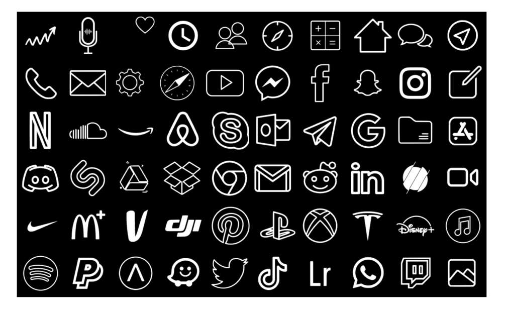 You'll get : 60 Full Black Minimalist App Icons + Instructions